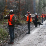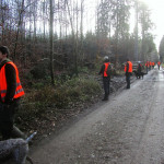 Nachdem sie hochmotiviert und -engagiert die Erläuterungen des Ausbilders Wolfgang Peis über die Gesellschaftsjagd verfolgt und dabei manche Frage gestellt hatten, ging es an die praktische Durchführung dieser Jagdart.